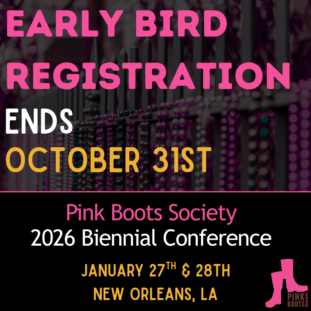 11:30-12:00 Quick April Meeting and announcements- learn what is going on in our local chapter and with the organization internationally. We'll talk through scholarships, webinars, Pink Boots virtual conference in September and other events.