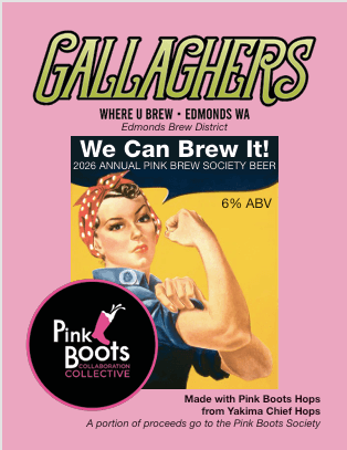 What is it? Gallaghers Where U Brew is participating in the Pink Boots Collaboration Collective Brew. Gallaghers has developed a unique beer called “We Can Brew It!” using the 9th Annual Pink Boots Blend hops from Yakima Chief Hops. $25 per person lets you participate to brew a unique “WE CAN BREW IT!” beer, enjoy snacking at the charcuterie table and enjoy good music & company. Return 3 weeks later to bottle & receive a 22oz bottle of the special labelled beer! There will also be more bottles available for purchase. Gallaghers will be providing a portion of proceeds to the Pink Boots Society.